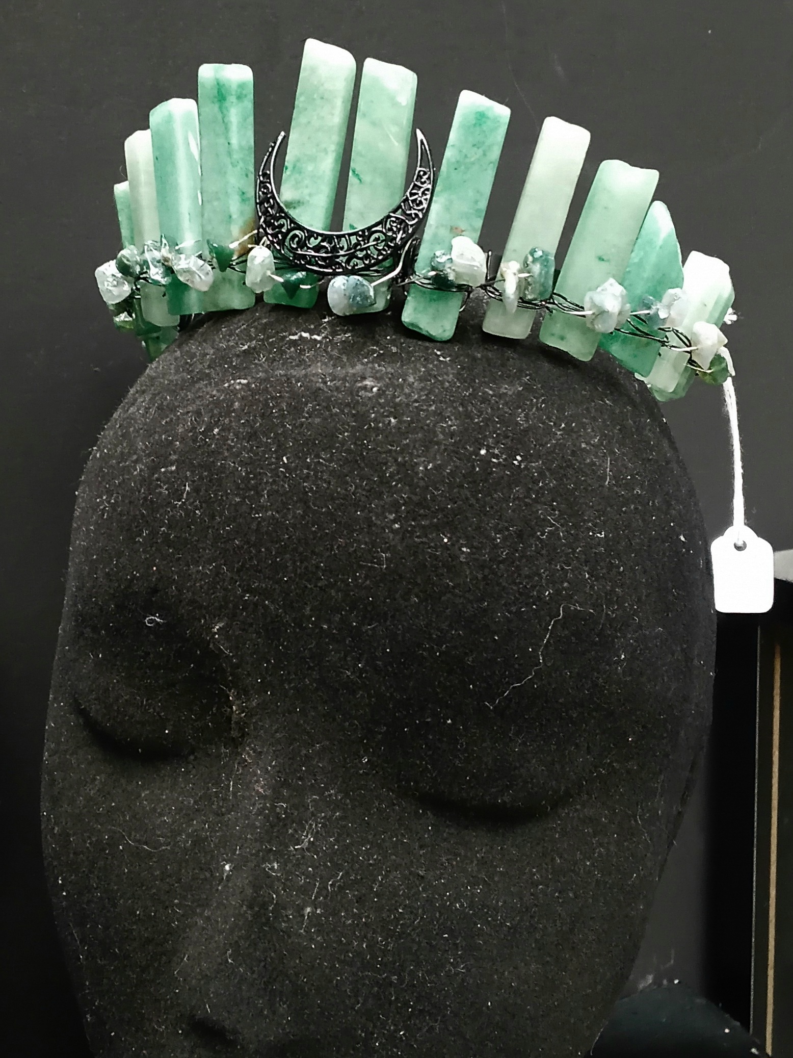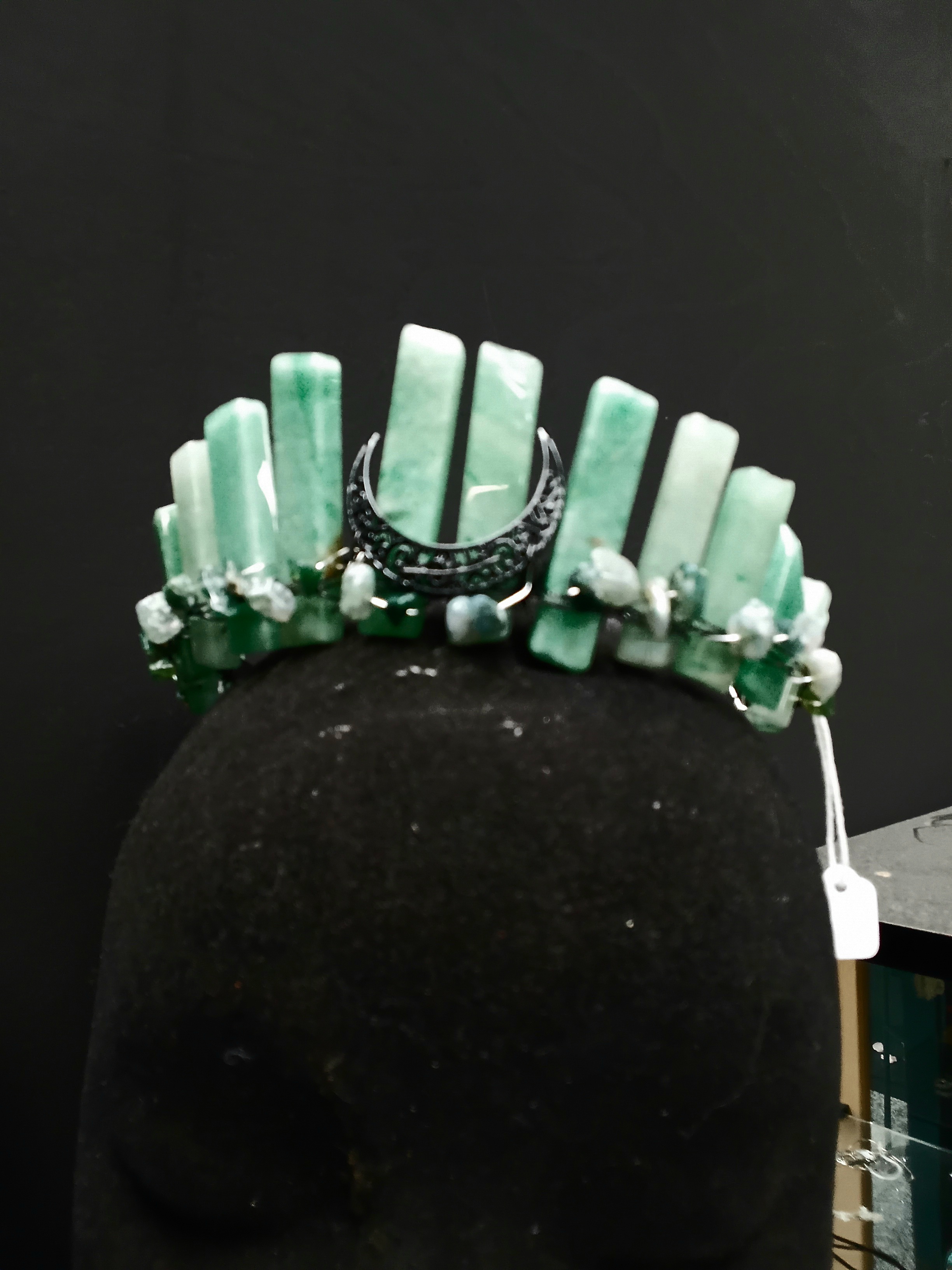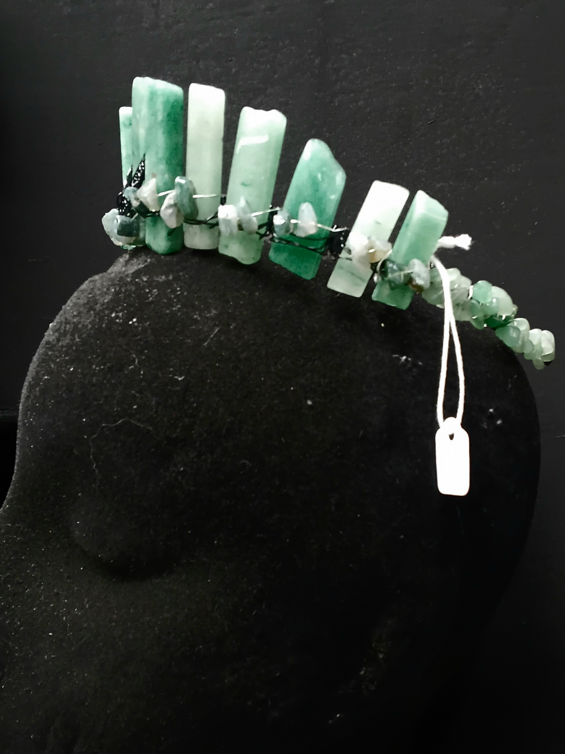 But this crown is more than just a pretty accessory. Aventurine is often referred to as the "stone of opportunity," believed to bring luck and prosperity to its wearer. It’s also known for its calming energy, helping to reduce stress and promote a sense of tranquility. Wearing this crown can be a gentle reminder to embrace positivity and stay grounded in your daily life.