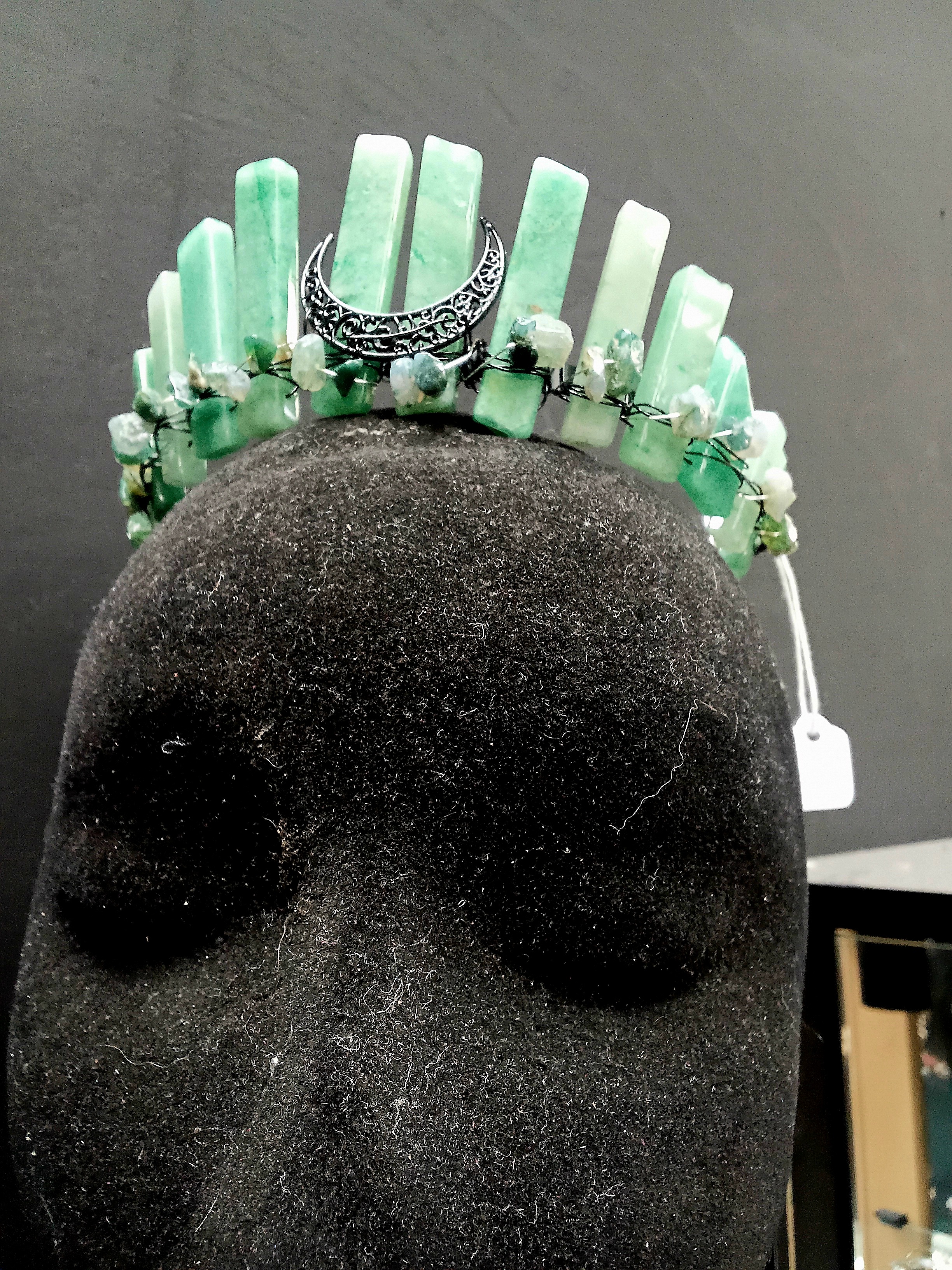 Introducing the stunning Gaia Green Aventurine Crystal Crown – a beautiful accessory that not only elevates your style but also connects you to the earth's natural energies. Crafted with care, this crown features exquisite green aventurine crystals, known for their soothing properties and ability to promote emotional balance. Each crystal is hand-selected for its unique beauty, ensuring that your crown is one-of-a-kind.