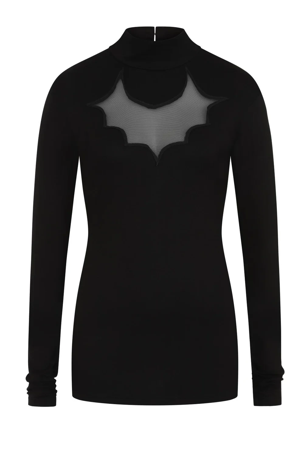 Embrace your dark side with the Necessary Evil Cybele Bat Panel Long Sleeve Top - a must-have statement piece for gothic fashion lovers and alternative style icons. This beautifully crafted top is a unique blend of bold design and flattering tailoring, making it a standout addition to any wardrobe. At the heart of the design is a dramatic bat-shaped panel across the chest, delivering an instantly recognisable symbol of gothic elegance and spooky sophistication.